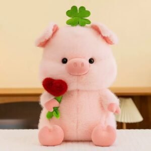 CHANCHO CON ROSA EN FORMA DE CORAZON 33CM